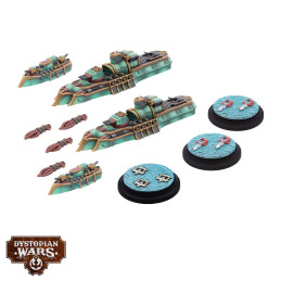 The ships included in the Japanese Frontline Squadron box are infamous for its mastery of alchemical weaponry, deadly gases and unquenchable flames designed to sow terror and devastation amongst the Empire's foes.The mighty Hokkaido was built to sail in a line of battle and respond to injury in kind. Further back behind these brawlers is the versatile Miyagi Advanced Monitor, renowned as an adaptable chassis capable of launching squadrons of Doksuri Fighters to terrorise enemy crews, or of seeding the area with deadly mines before the battle even begins. Newest to the fleets of Empress Shinzua, the Blazing Sun, is the Oni Command Cruiser, deploying some of the Empire's advanced generator technology to the frontlines. Ranging ahead, meanwhile, are the Kyoto Fast Frigates, which excel at darting around an enemy flank and opening fire from wherever it is least expected.