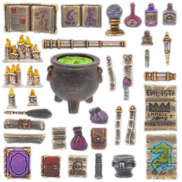 Over 300 plastic bits in this box to add to your models, bases, dioramas, and more! Everything from cauldrons, sacks, candles, tomes, potions...and more and more!