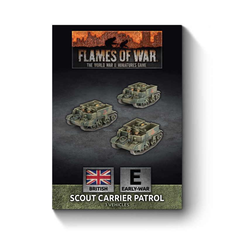 Each infantry battalion has a carrier platoon of three patrols. Each patrol has three scout carriers, each crewed by an NCO, a driver/mechanic and a rifleman. The carriers are armed with Bren light machine-guns and Boys anti-tank rifles.