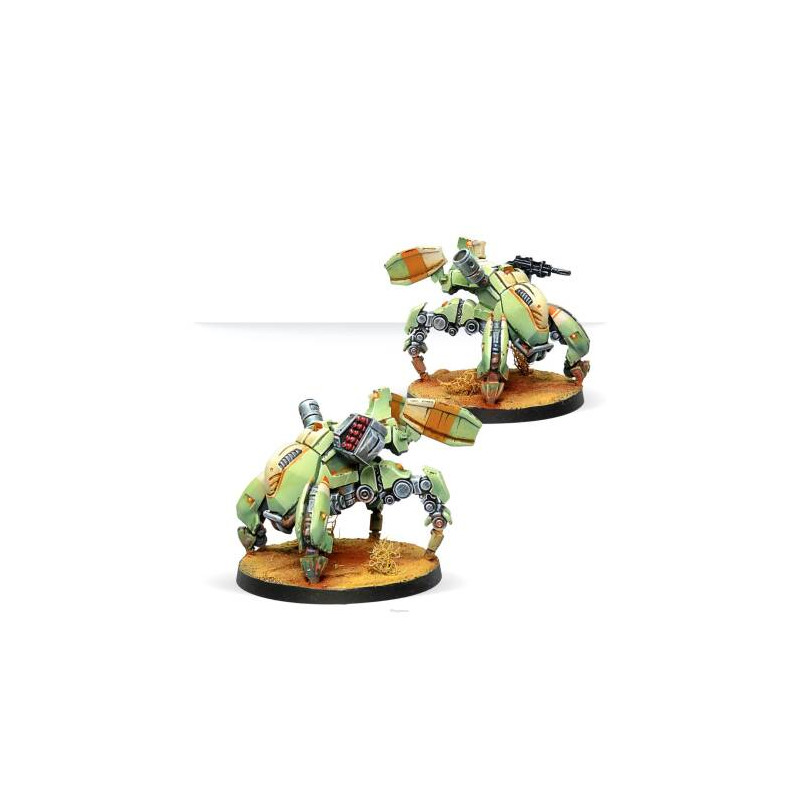 This box includes two miniatures: two Remotes with different weaponry or equipment to suit your needs. The best way to add versatility to your Haqqislam force.