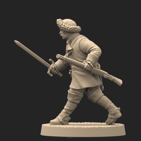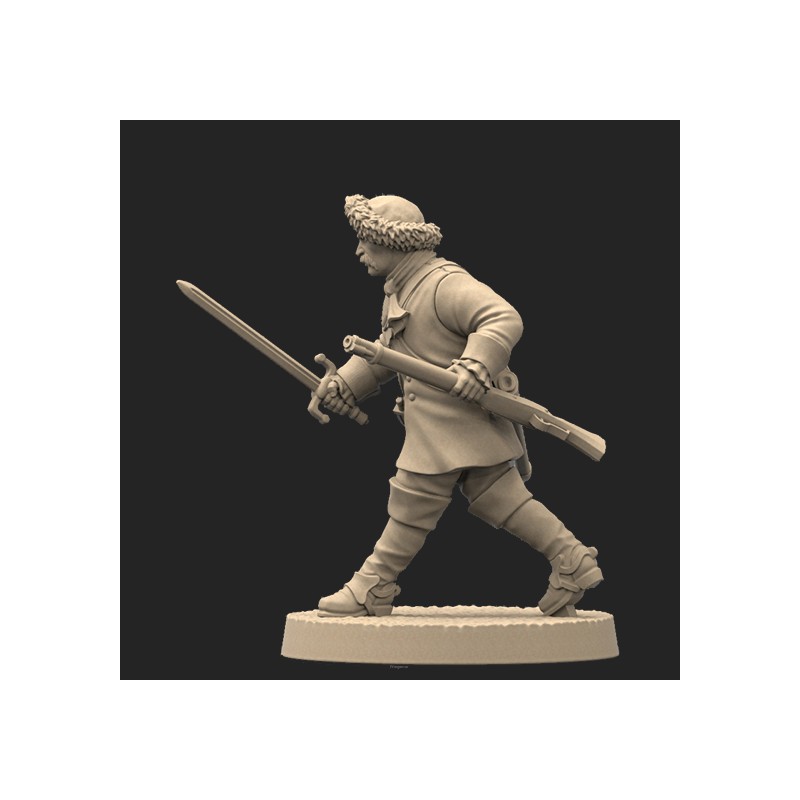 Jeden model oraz plastikowa podstawka. Model jest niepomalowany oraz niesklejony. Opakowanie NIE zawiera kart, model jest produktem kolekcjonerskim/dla malarzy, a nie elementem gry Anno Domini 1666.