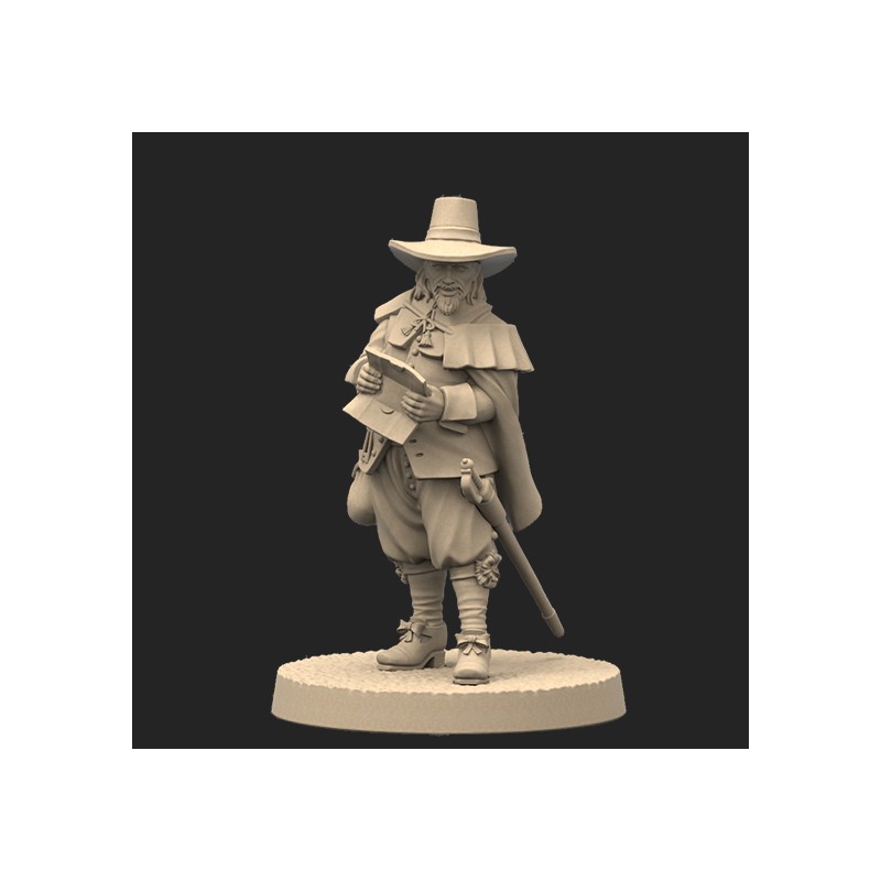One metal miniature and base. Model is unpainted and requires assembly. Product DOESN'T contain any card. This is miniature for collectors/painters not a part of the Anno Domini 1666 game.