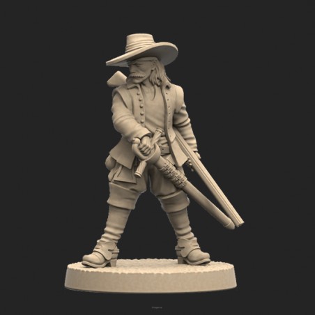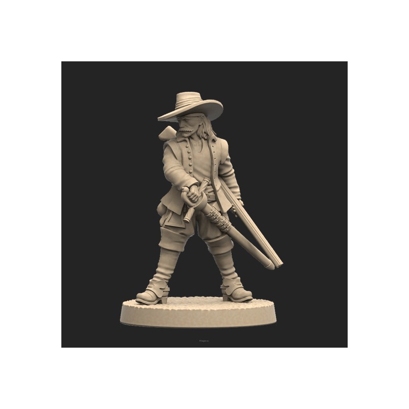 Jeden model oraz plastikowa podstawka. Model jest niepomalowany oraz niesklejony. Opakowanie NIE zawiera kart, model jest produktem kolekcjonerskim/dla malarzy, a nie elementem gry Anno Domini 1666. One metal miniature and base. Model is unpainted and requires assembly. Product DOESN'T contain any card. This is miniature for collectors/painters not a part of the Anno Domini 1666 game.