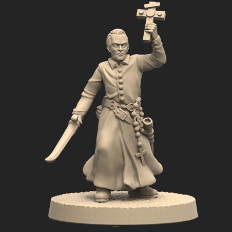 Jeden model oraz plastikowa podstawka. Model jest niepomalowany oraz niesklejony. Opakowanie NIE zawiera kart, model jest produktem kolekcjonerskim/dla malarzy, a nie elementem gry Anno Domini 1666. One metal miniature and base. Model is unpainted and requires assembly. Product DOESN'T contain any card. This is miniature for collectors/painters not a part of the Anno Domini 1666 game.