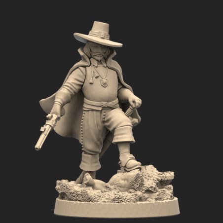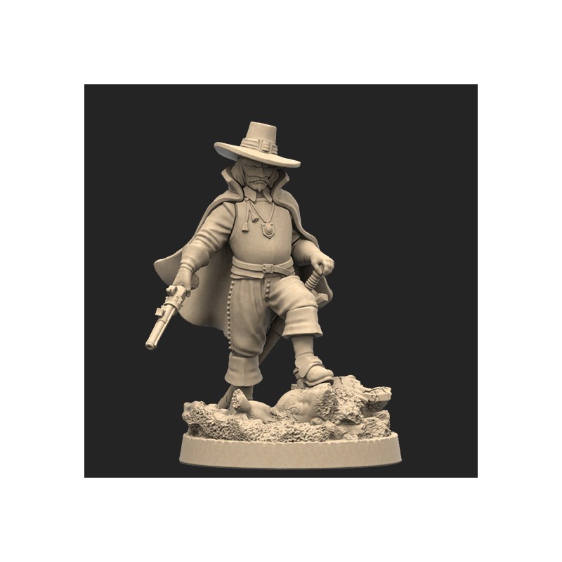 Jeden model oraz plastikowa podstawka. Model jest niepomalowany oraz niesklejony. Opakowanie NIE zawiera kart, model jest produktem kolekcjonerskim/dla malarzy, a nie elementem gry Anno Domini 1666. One metal miniature and base. Model is unpainted and requires assembly. Product DOESN'T contain any card. This is miniature for collectors/painters not a part of the Anno Domini 1666 game.