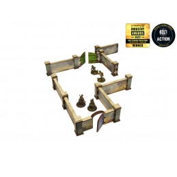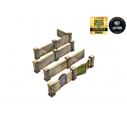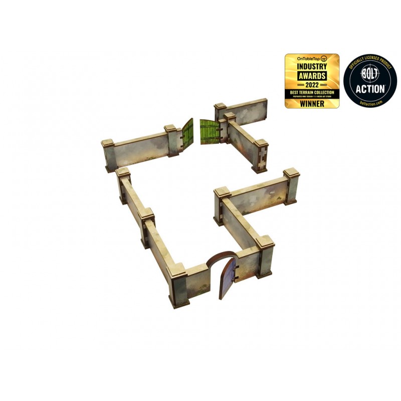Multicolor prepainted (UV-printed) modular WW2 Normandy high Wall with Gate terrain. The gate can be opened or closed during play. Infantry full cover and vehicle hard cover, a perfect defensive position. Scale: 28-30mm / 1:56. Bolt Action officially licensed product.