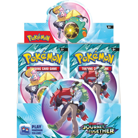 A booster pack is a pack of random cards that will allow you to strengthen your team. Scarlet & Violet - Journey Together is the perfect way to expand your card collection. Each booster pack offers the chance to earn rare ex-Pokémon cards that will add power and unique character to your team.