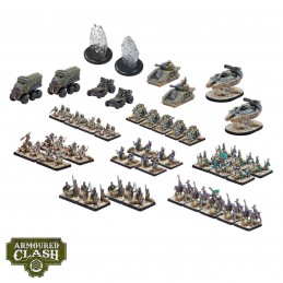 This product is ideal for players who want an introduction to Armoured Clash. In addition to the models for your chosen faction, you will also find custom Attack Dice, Dystopian Age Token Sheets, and a Quickstart Booklet to get you playing.