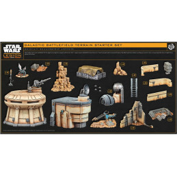 This set includes elements combining various terrain types from Atomic Mass Games' miniatures games, including unique and varied structures inspired by the Star Wars universe. This product will not be reprinted, so this is your chance to complete or start your collection!