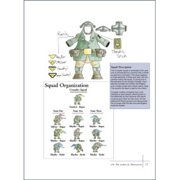 New lore and uniform plates for seven of the main Factions on Alwyd make up the setting chapter of the book, with all the information needed to choose the right group for you. The upstart Crusaders and elite veterans of Toulmore are joined by the Western Arnyarans in the fight against the Royalist forces of Coftyr, Fidwog, Gwynt, and Creevin.