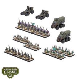 This Armoured Clash Infantry Regiment box is the perfect way to expand your Sultanate force with fast and light options. Stalwart Janissaries are the foundation of the Sultanate's military, expert sharpshooters well-suited to holding key assets and locations. Mergen Transports carry these elite troops to where they are most needed, their breakneck advance across the battlefield covered by highly mobile Mergen Field Guns. The Spica Orionis are the silent shadows of Mustafa the Golden's armies, ambushing the enemy with surgical precision, while the eternal warriors of the Persian Immortals hold the line wherever they appear, their casualties endlessly replenished by the very portals from which they emerge. And all the while, the blackhoof automata of the Macedonian Companions crash into enemy lines, under the arcing firepower of Kavgaci and Parlama ATVs.