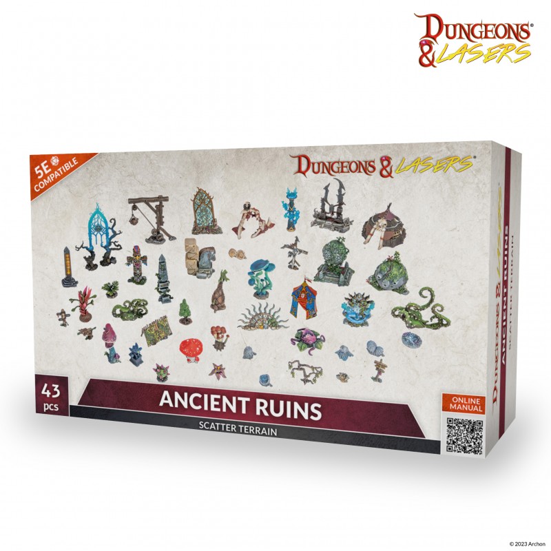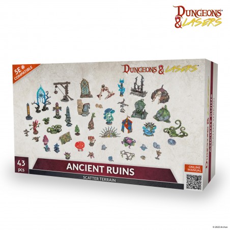 Immerse yourself in a mystical world that perfectly captures the atmosphere of bygone eras. The ruins you encountered have lasted for centuries, witnessing more than a few events that have made it into the annals of history. As you know, the past has many stories to tell... Box contains: - Gate of the Sun. - Elven Stained Glass. - Gate of Might. - Elven Pillar. - Fountain of Forget. - 4 various mushrooms. - 2 various thorns. - 3 various plants. - Place Long Forgotten. - Obelisk of Dread. - Chainbreaker. - Speaking Stone. - Creepy Monument. - Monolith. - Spider Lair. - 4 various direction signs. - 2 various excavations. - Wooden Crane. - Stone Horse. - 5 various bushes. - 4 various spiderwebs. - Shaman's Tent. - Good Ol' Hut. - Legionarre's Tent. - Spirit Totem. - Vulture on Remains. Requires manual assembly and painting.