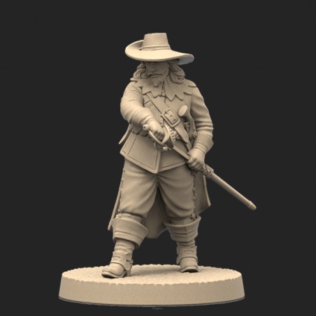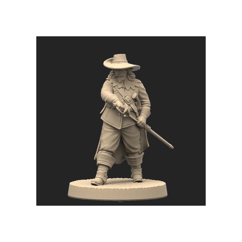 Jeden model oraz plastikowa podstawka. Model jest niepomalowany oraz niesklejony. Opakowanie NIE zawiera kart, model jest produktem kolekcjonerskim/dla malarzy, a nie elementem gry Anno Domini 1666. One metal miniature and base. Model is unpainted and requires assembly. Product DOESN'T contain any card. This is miniature for collectors/painters not a part of the Anno Domini 1666 game.