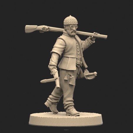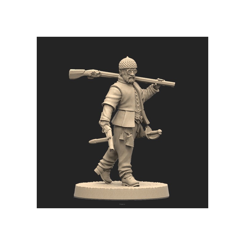 Jeden model oraz plastikowa podstawka. Model jest niepomalowany oraz niesklejony. Opakowanie NIE zawiera kart, model jest produktem kolekcjonerskim/dla malarzy, a nie elementem gry Anno Domini 1666. One metal miniature and base. Model is unpainted and requires assembly. Product DOESN'T contain any card. This is miniature for collectors/painters not a part of the Anno Domini 1666 game.