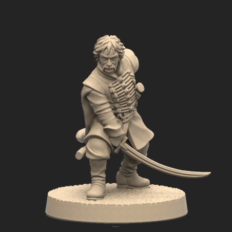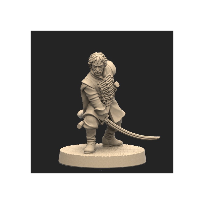 Jeden model oraz plastikowa podstawka. Model jest niepomalowany oraz niesklejony. Opakowanie NIE zawiera kart, model jest produktem kolekcjonerskim/dla malarzy, a nie elementem gry Anno Domini 1666. One metal miniature and base. Model is unpainted and requires assembly. Product DOESN'T contain any card. This is miniature for collectors/painters not a part of the Anno Domini 1666 game.