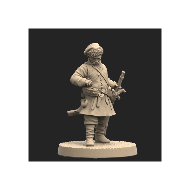 Jeden model oraz plastikowa podstawka. Model jest niepomalowany oraz niesklejony. Opakowanie NIE zawiera kart, model jest produktem kolekcjonerskim/dla malarzy, a nie elementem gry Anno Domini 1666. One metal miniature and base. Model is unpainted and requires assembly. Product DOESN'T contain any card. This is miniature for collectors/painters not a part of the Anno Domini 1666 game.
