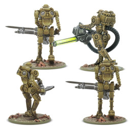 Box contains 4 plastic miniatures; with Light Automatic Cannon, Heavy Automatic Cannon, and M21 Light Tesla Cannon weapon options; supplied with plastic bases and assembly guide.