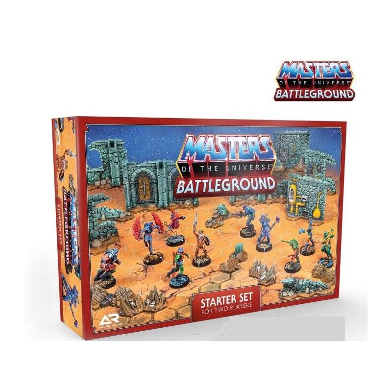 Experience fast, action-packed battles with the Masters of the Universe: Battleground miniature game, based on the beloved "Classics" toy series. Pick He-Man’s or Skeletor’s faction and compete with a second player to control the power of Eternia. Gear yourself up with various weapons and magical items, use the terrain in your favor. An innovative activation system and numerous character build combinations will make each game unique and exciting. Starter Set components: - 1x Game Board - 1x Rule Book - 1x Battleground Book - 10x Dice - 2x Rulers - 40x Terrain Accessories - 227x Cards - 108x Assorted Tokens Miniatures: - 1x He-Man Miniature - 1x Man-At-Arms Miniature - 1x Stratos Miniature - 1x Orko Miniature - 1x Ram Man Miniature - 1x Skeletor Miniature - 1x Evil-Lyn Miniature - 1x Trap Jaw Miniature - 1x Mer-Man Miniature - 1x Tri-Klops Miniature All elements come unpainted and unassembled and may require trimming and cleaning before assembly.